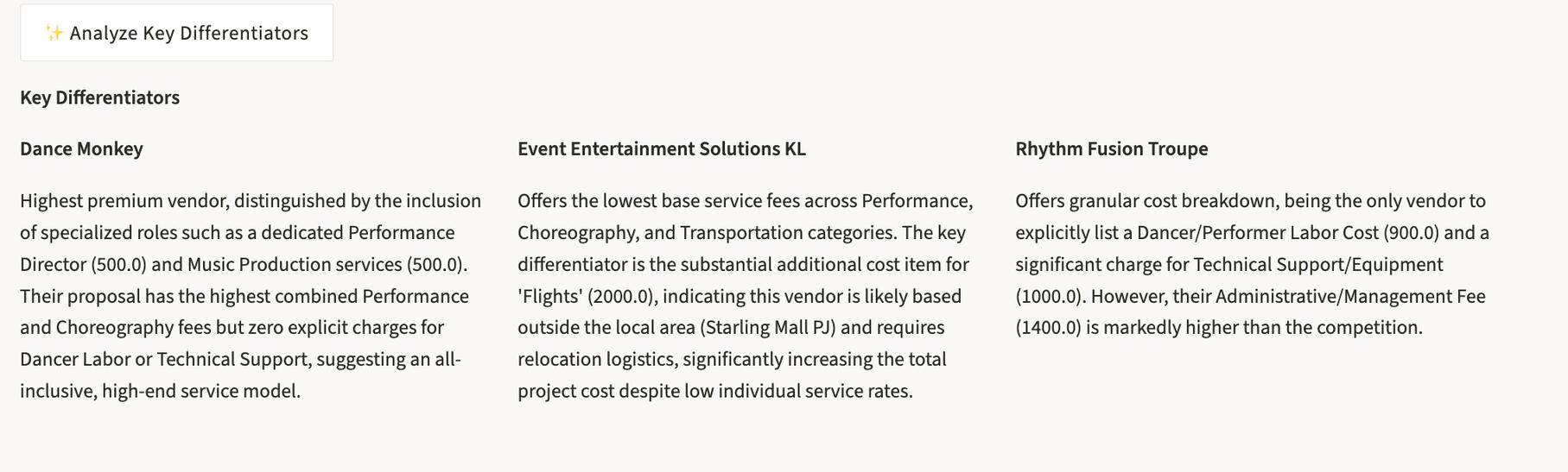 Built in under a week to validate the end-to-end procurement flow, from requirements to vendor proposals to comparison.